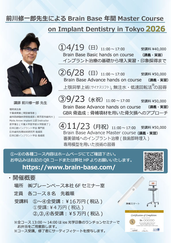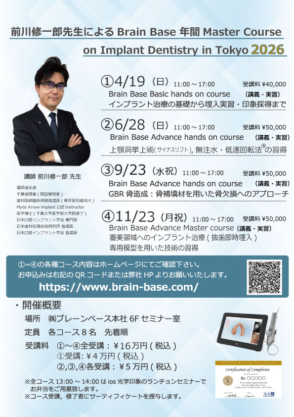 2026年 Brain Base Master Course on Implant Dentistry in Tokyo 2026を開催いたします。