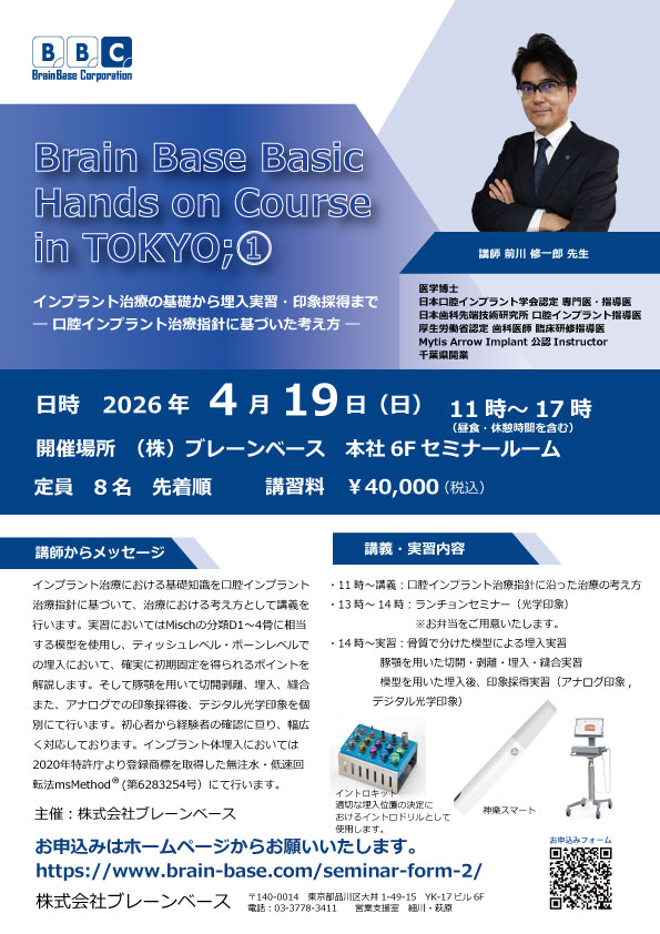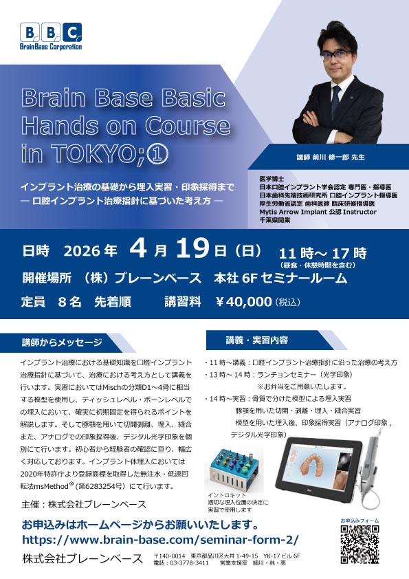 2026年4月19日(日)Brain Base Basic hands on course Course in TOKYO;①を開催いたします。