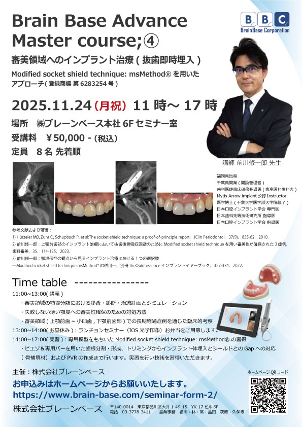 2025年11月24日(月 祝)Brain Base Advance Master Course ; ④は定員に達したため満員御礼とさせていただきます。